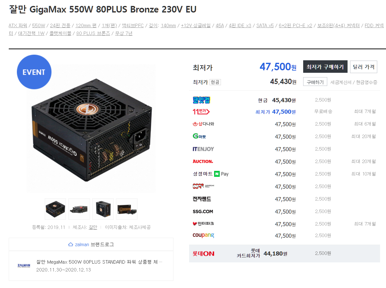 오늘 리뷰할 제품은 잘만 社 파워 서플라이, ZALMAN GigaMAX 550W 80 PLUS Bronze 제품이다.