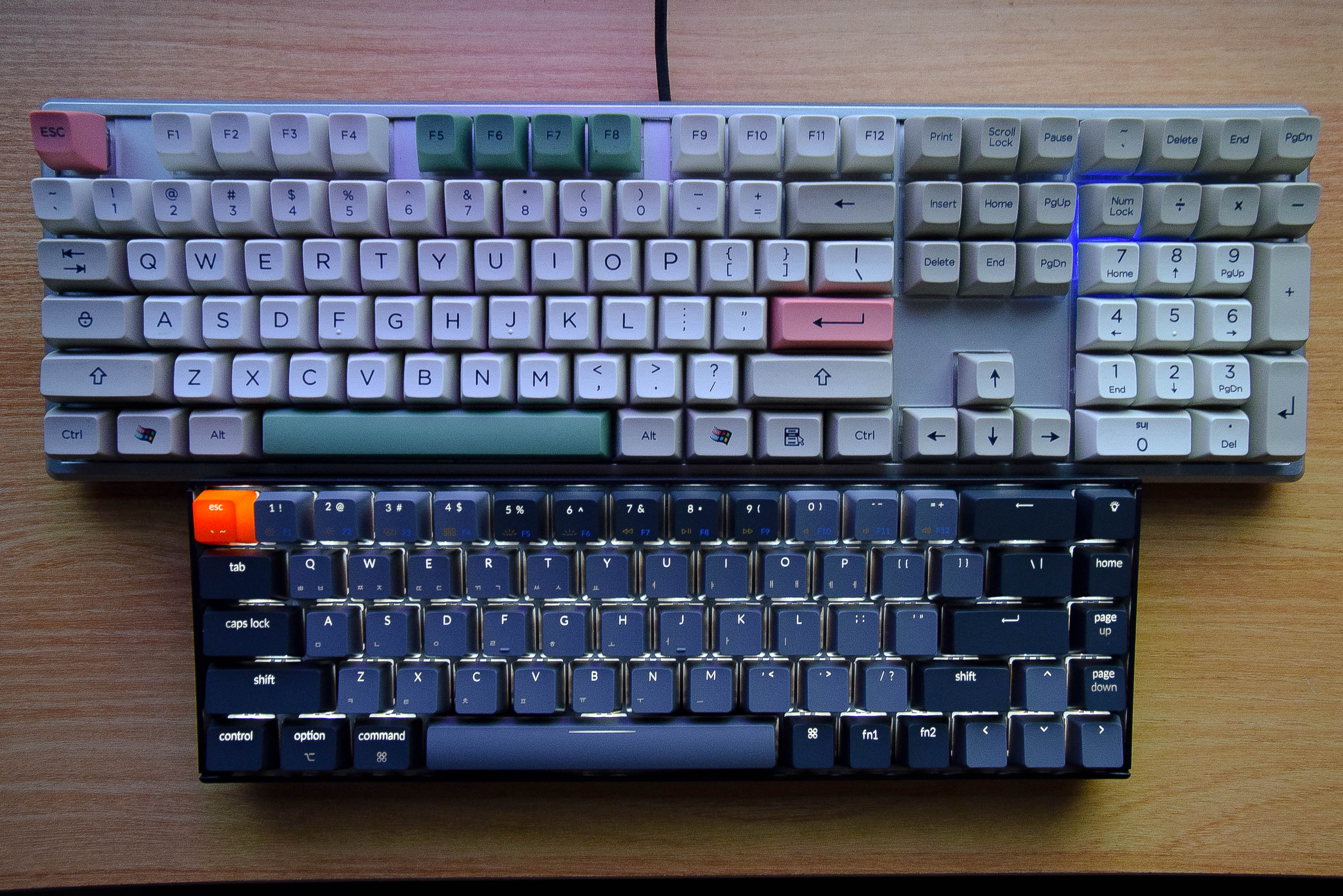 일반적인 104키 배열의 키보드와 비교한 모습이다.