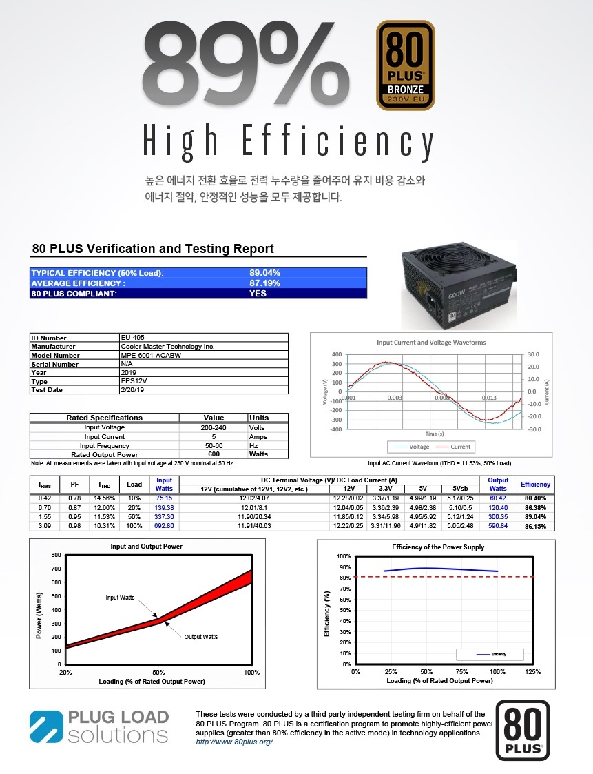 일반적인 환경에서 (약 50% 로드시) 최대 89%의 효율을 보여준다.