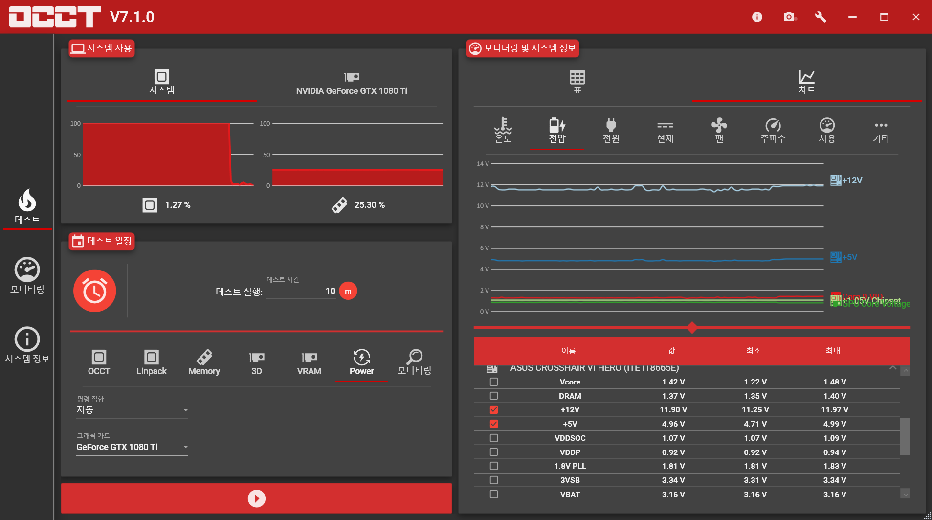 +12V 는 최저 11.25V, 최고 11.97V 값을 보여주었다.