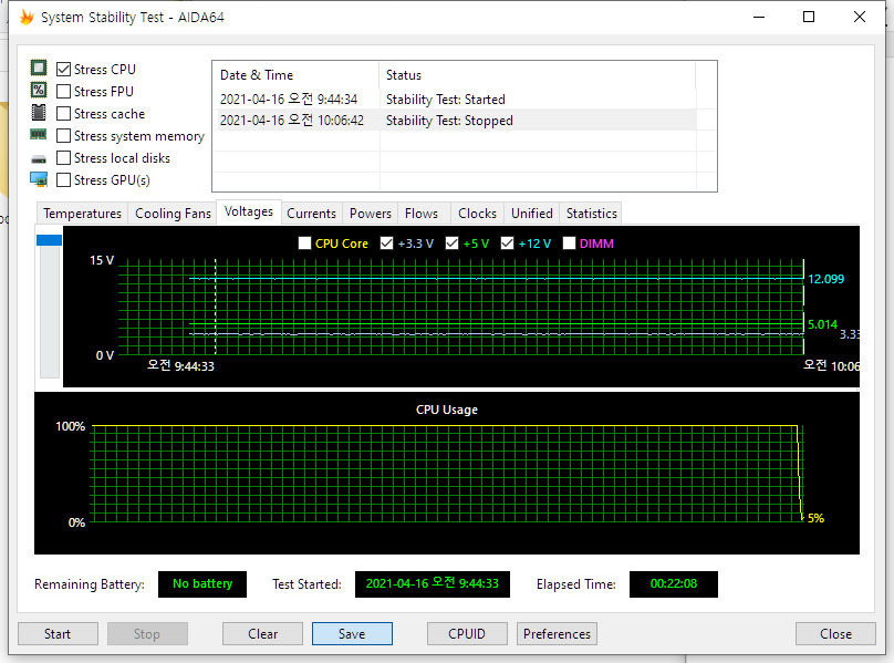 OCCT 프로그램과 AIDA 64 프로그램을 통해 테스트한 결과이다.