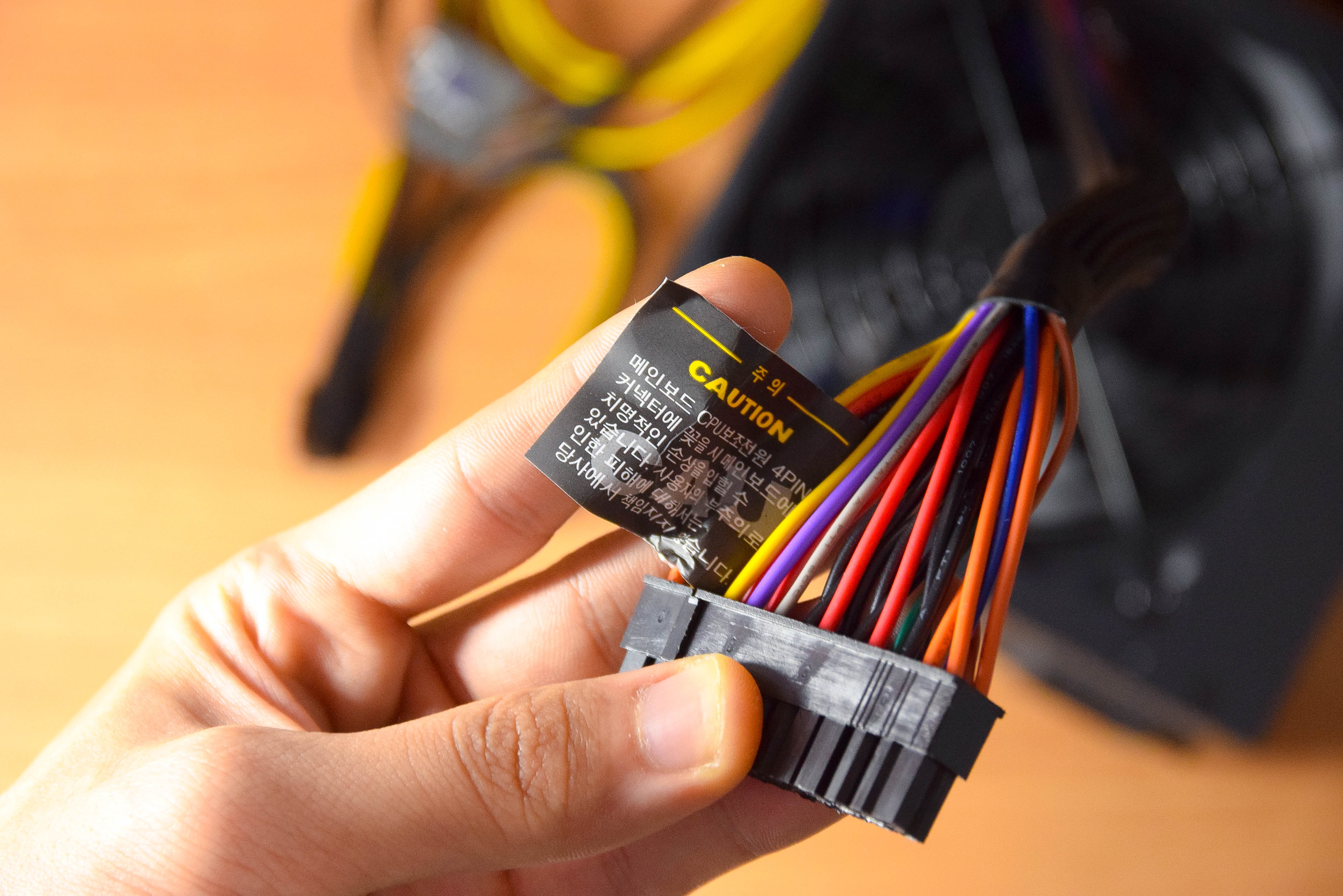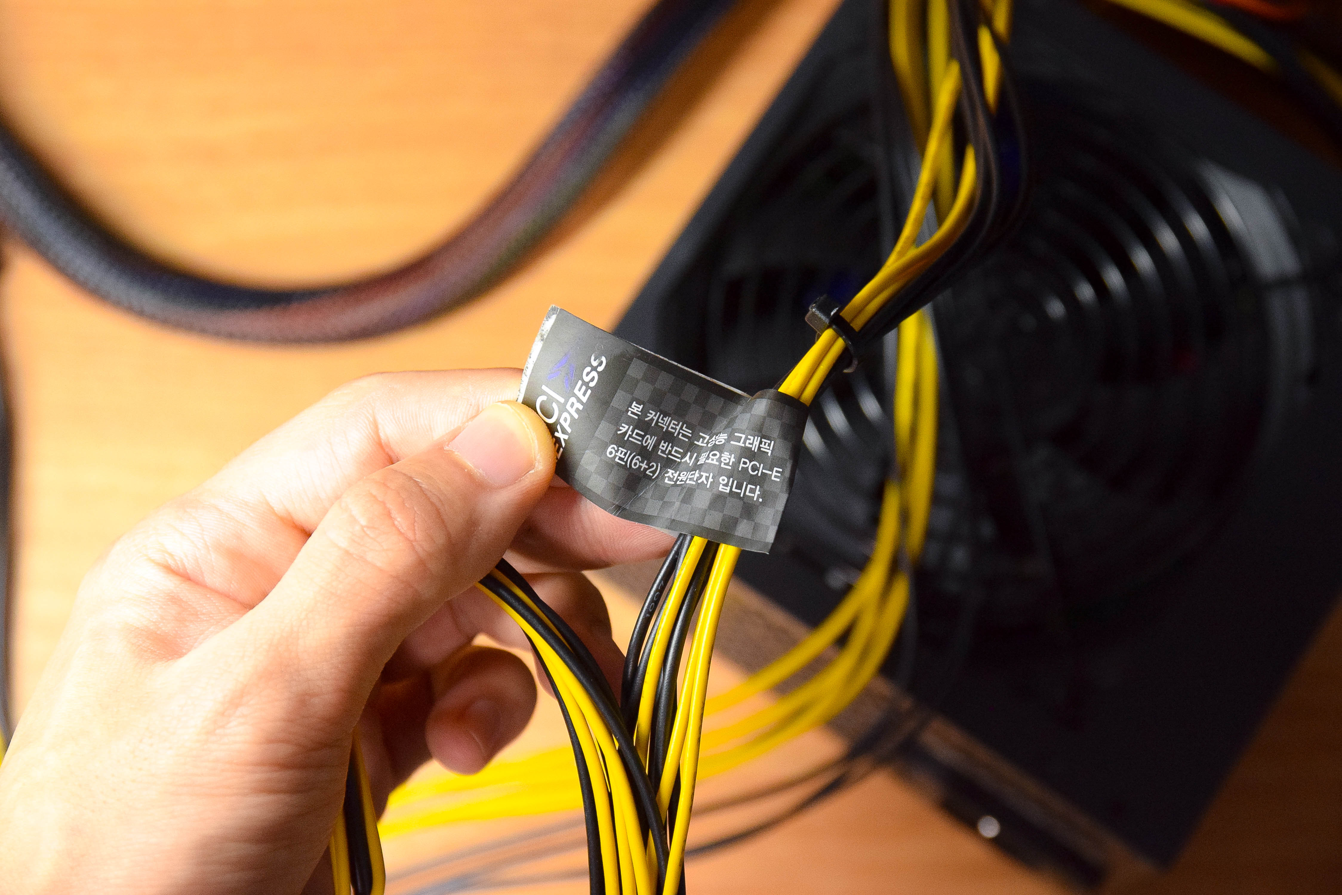 PCI-E 8+8 핀 케이블도 역시, 주의 스티커가 붙어있다.