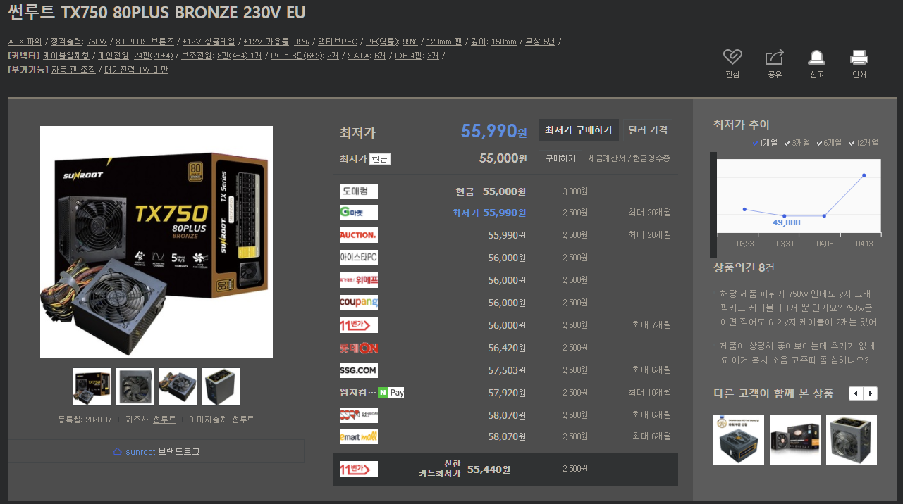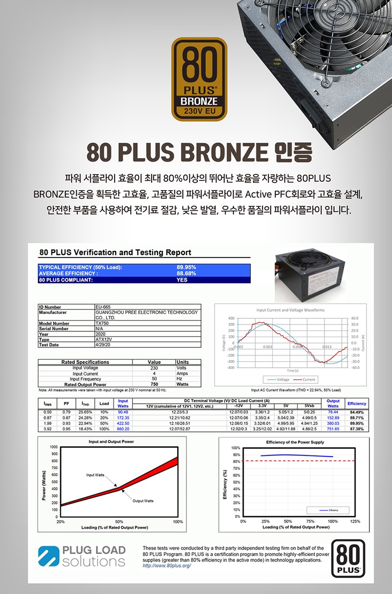 정격 750W 파워 제품 군 중 매우 저렴한 가격에 판매되고 있고, 80PLUS 브론즈 인증으로 성능까지 잡은 제품이다.