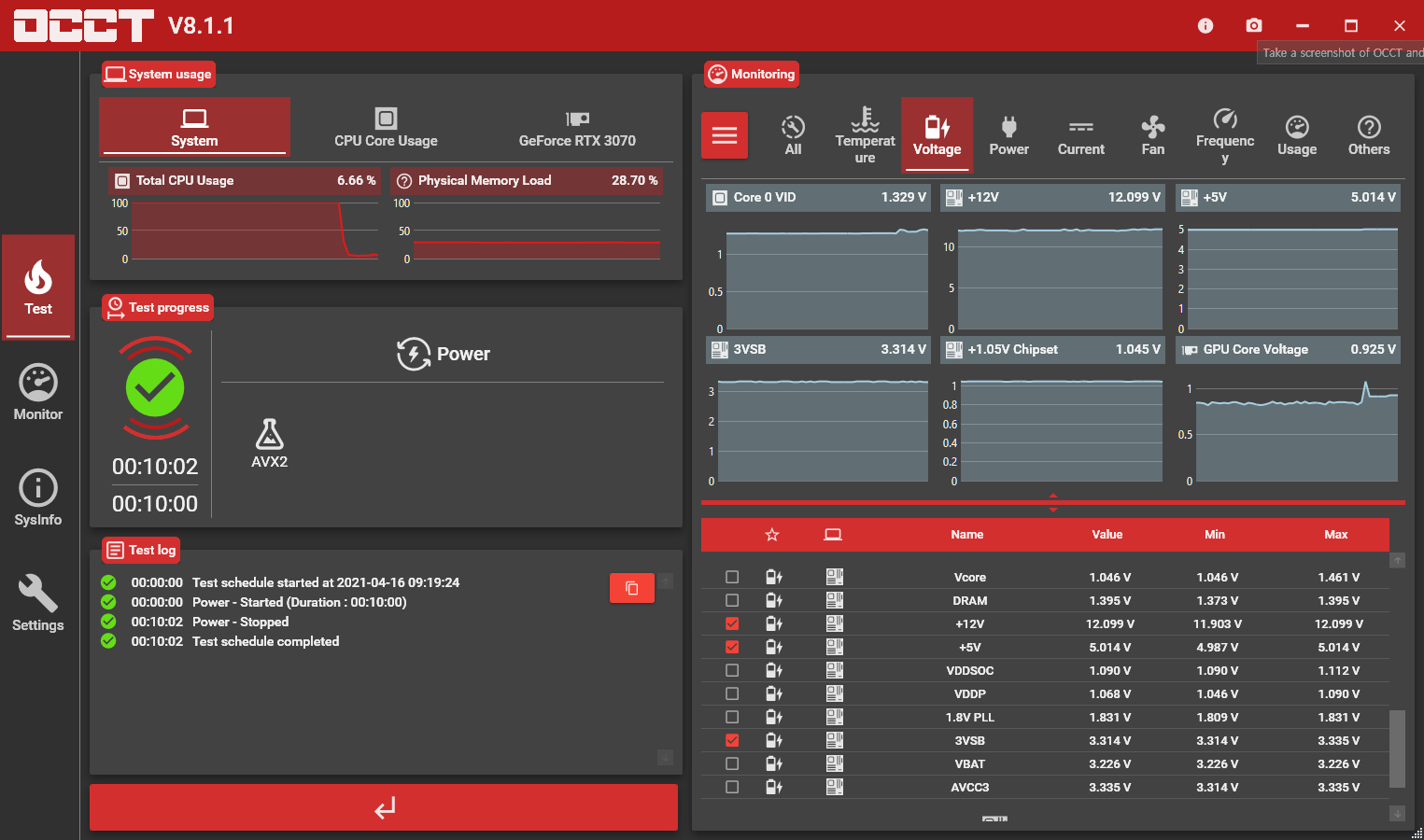 +3.3V 의 경우 Min 3.314V, Max 3.335V 로 역시 1% 미만의 공차율을 보여주었다.