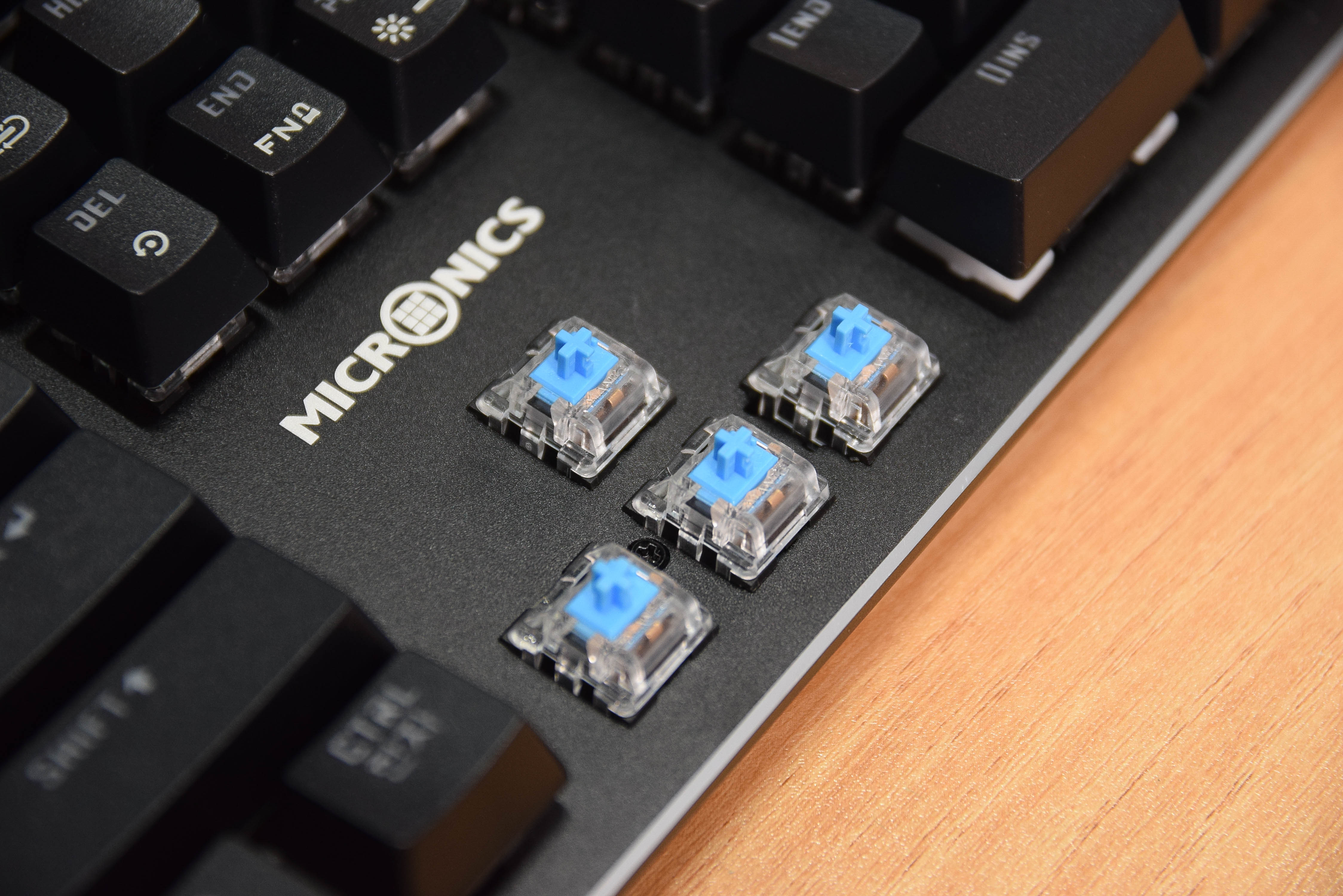 마이크로닉스 자사 스위치인 MANIC 2세대 스위치가 적용되었고, 상판에 알루미늄을 덧대 단단한 키감을 보여준다.