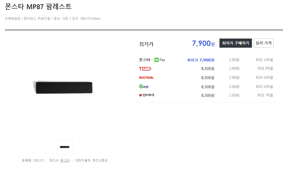 금일 리뷰할 제품은 몬스타 기어 社 키보드 팜레스트 MP87이다.