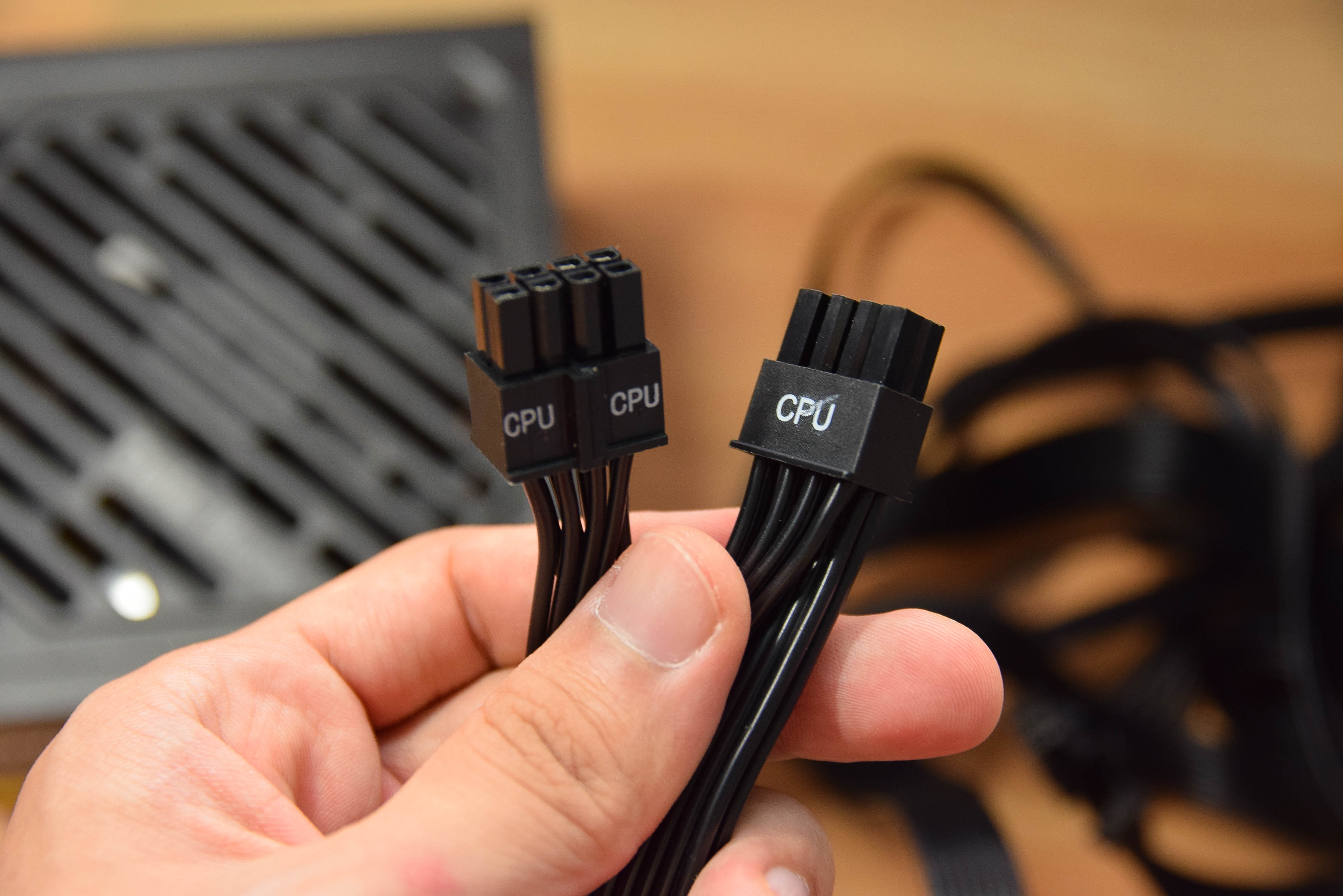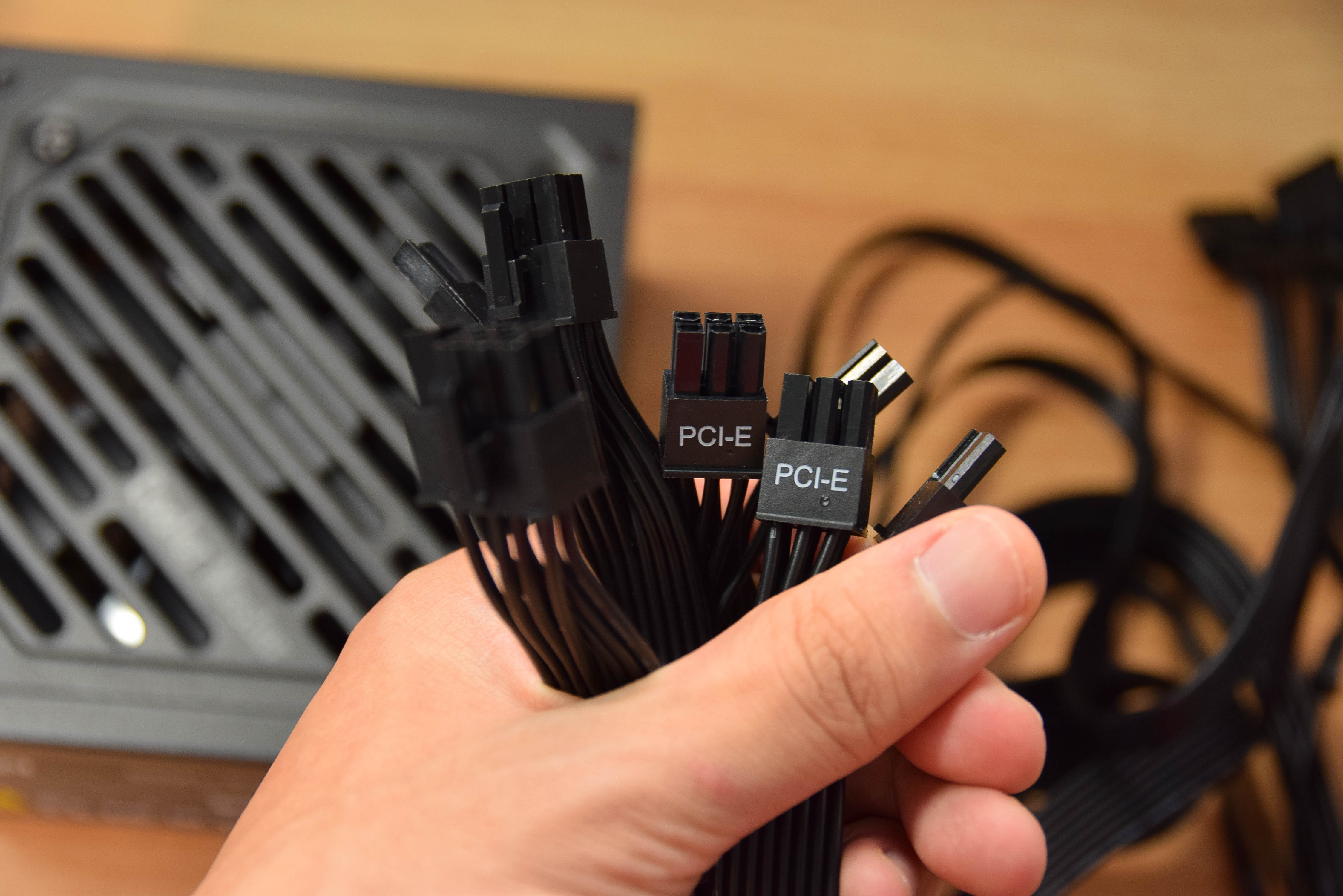 케이블 구성은 CPU 8 pin x 2, PCI-E 8pin x 4, SATA x 6, IDE 4 pin x 3으로 구성되어 있다.