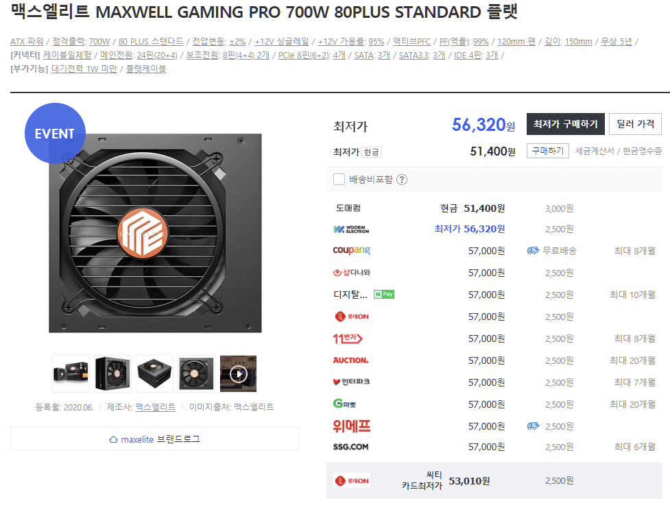 금일 리뷰할 제품은 정격 700W 파워 서플라이, 맥스엘리트 MAXWELL GAMING PRO 700W 80 PLUS STANDARD 플랫 제품이다.