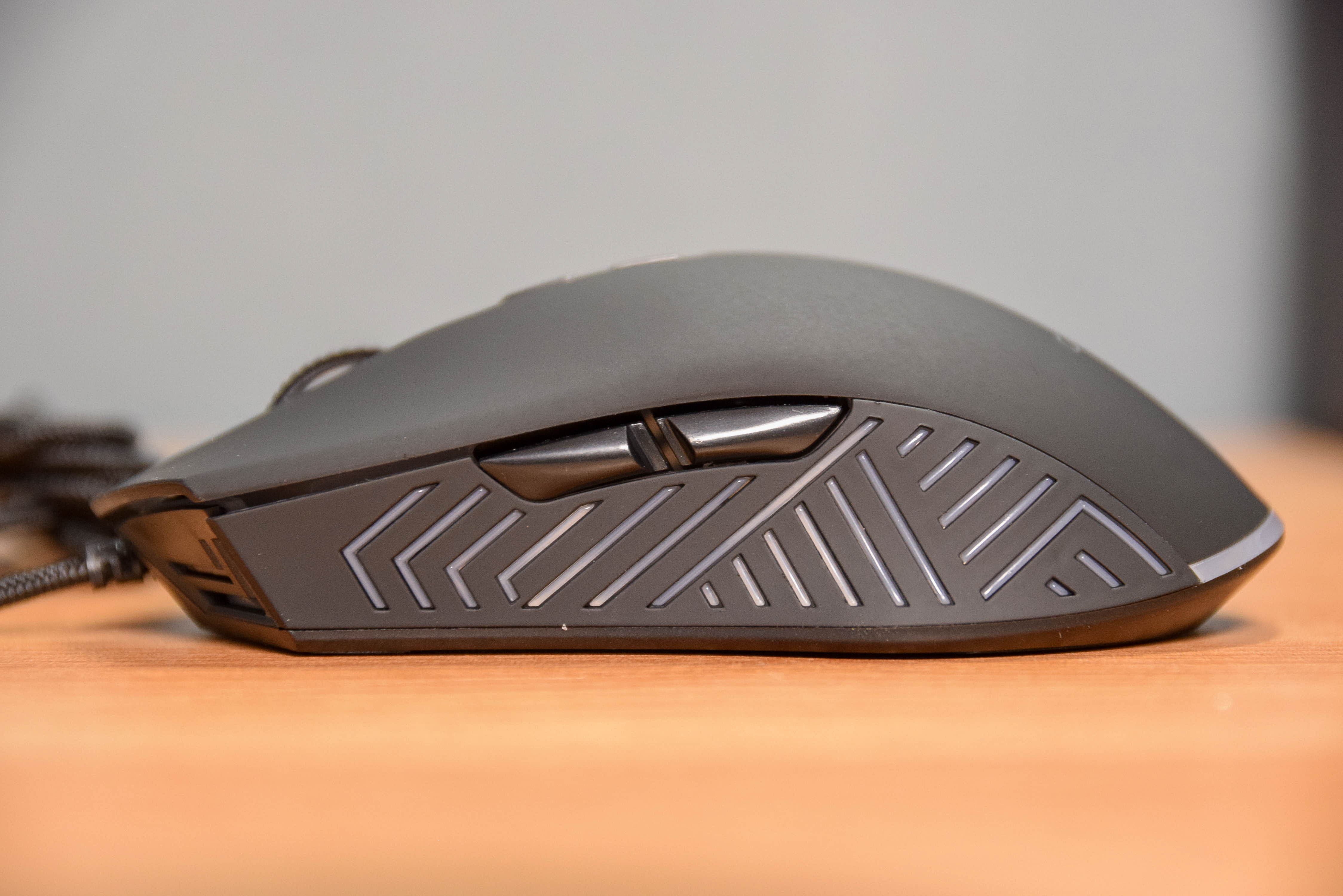 측면부도 역시 같은 재질의 플라스틱으로 제작되어 있으나, LED 발광부를 위한 홈이 측면 그립감의 도움이 되었다.