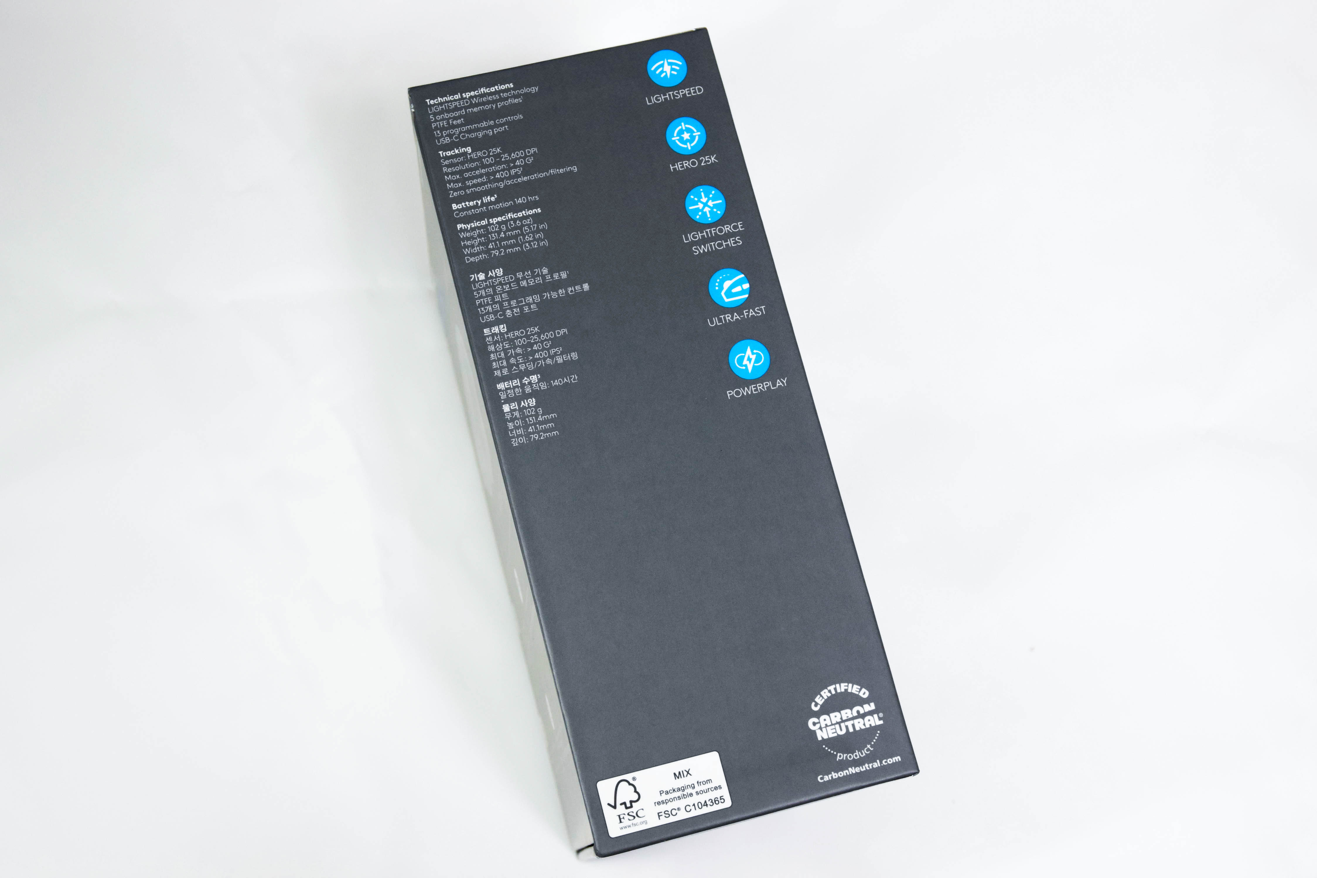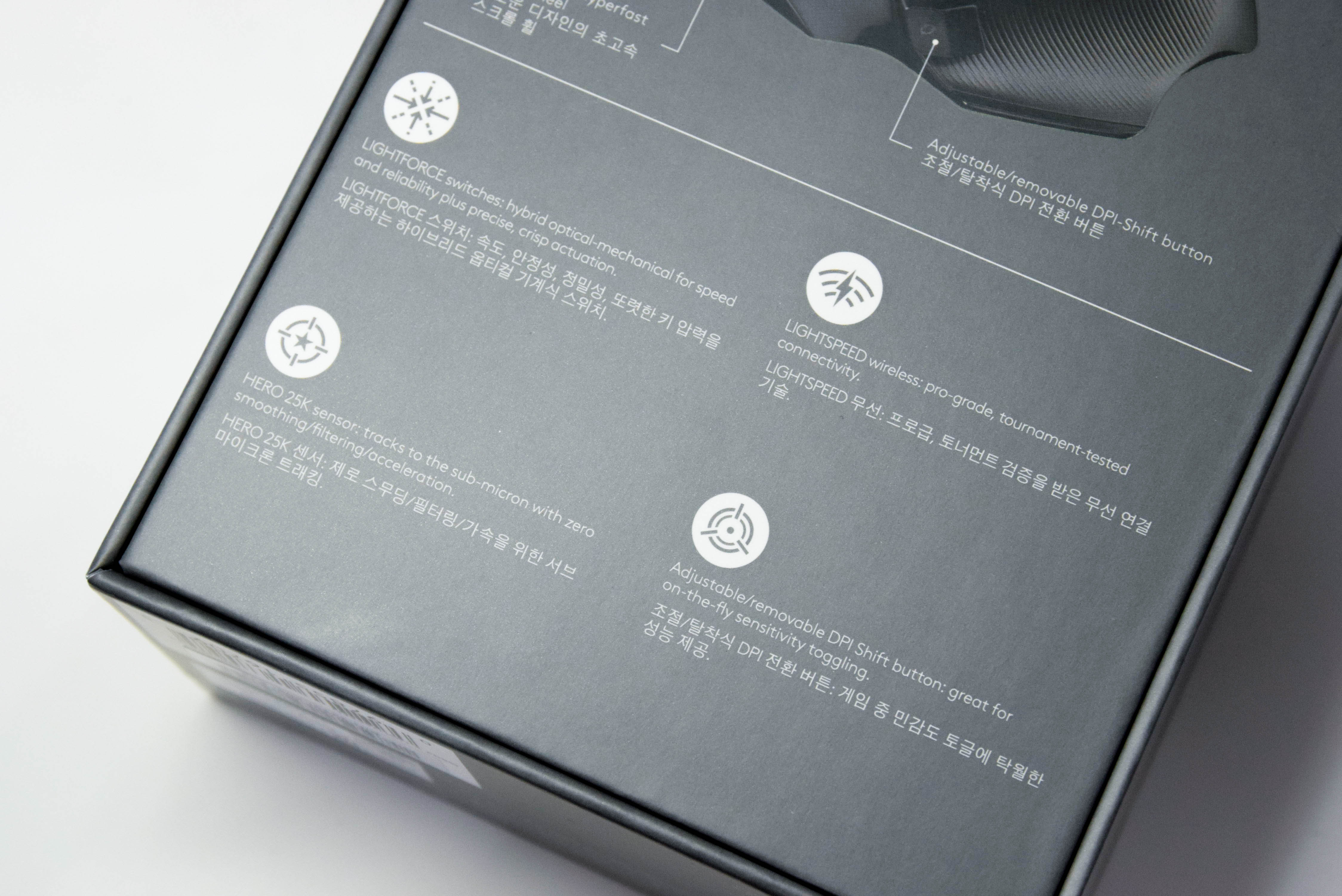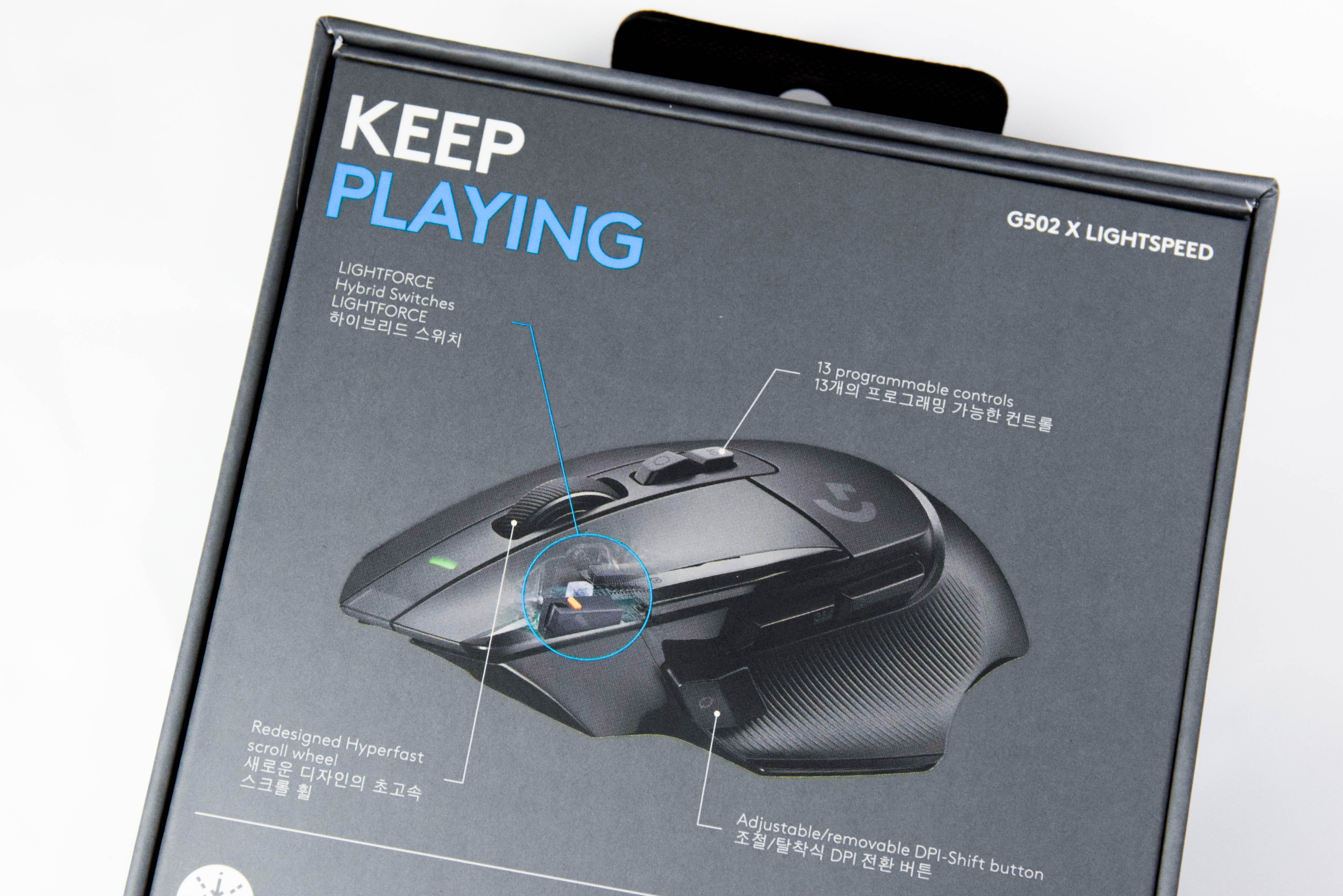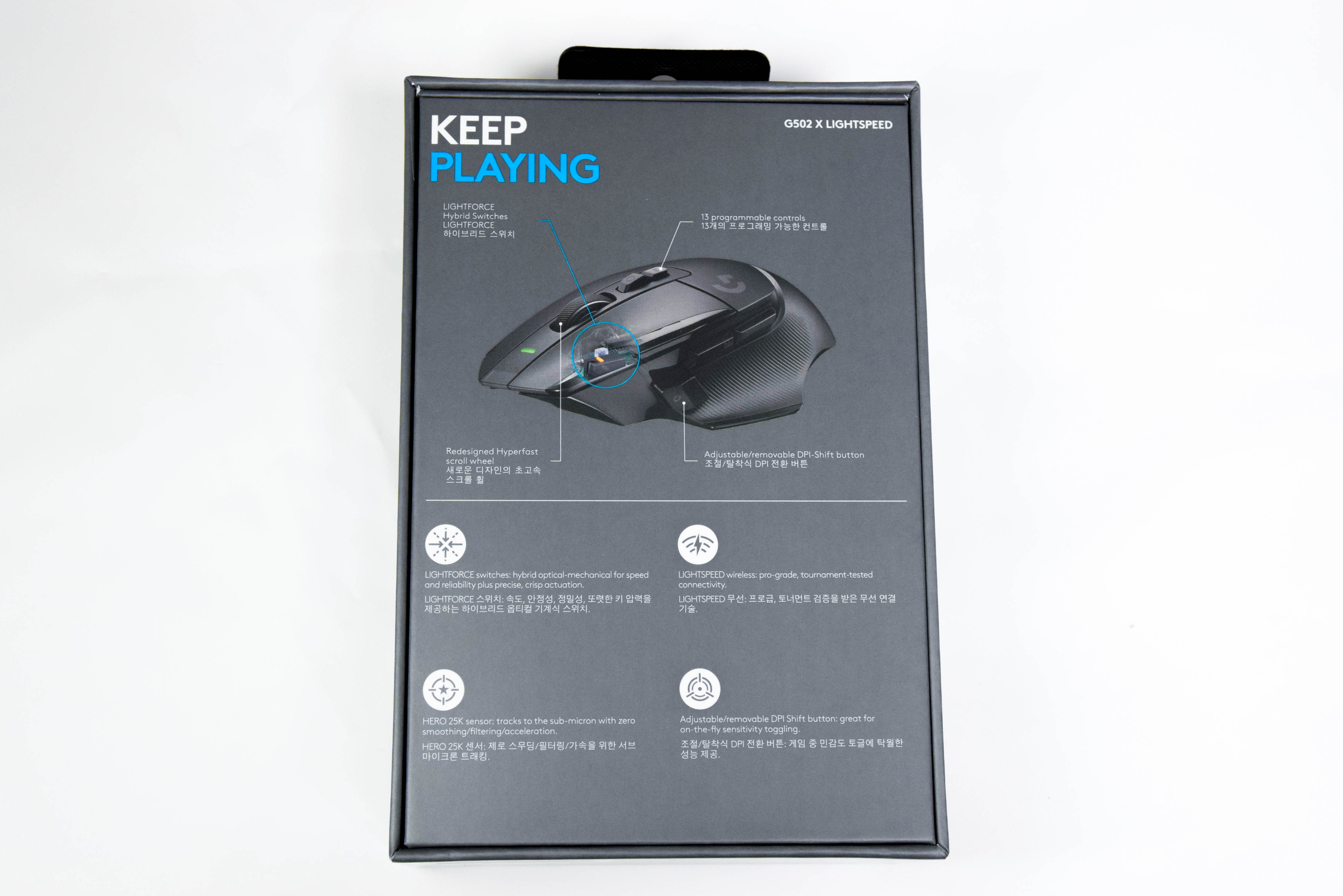 패키징 후면에는 G502 X LIGHTSPEED의 특장점을 상세히 설명하고 있다.