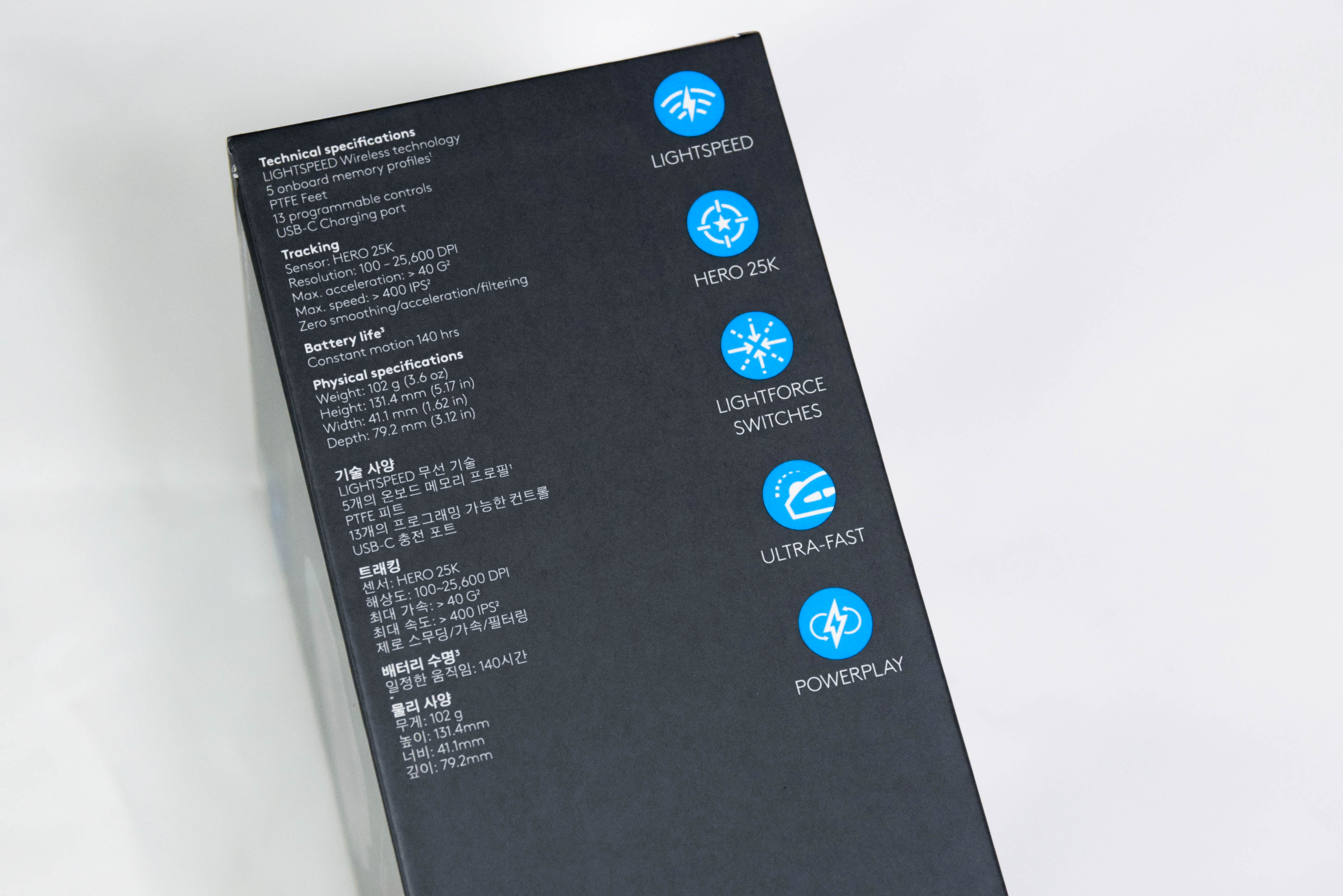 기존 G502 LIGHTSPEED WIRELESS 제품의 업그레이드 버전으로, 좀 더 부드러워진 디자인, 최상급의 HERO 25K 센서가 탑재되었다.