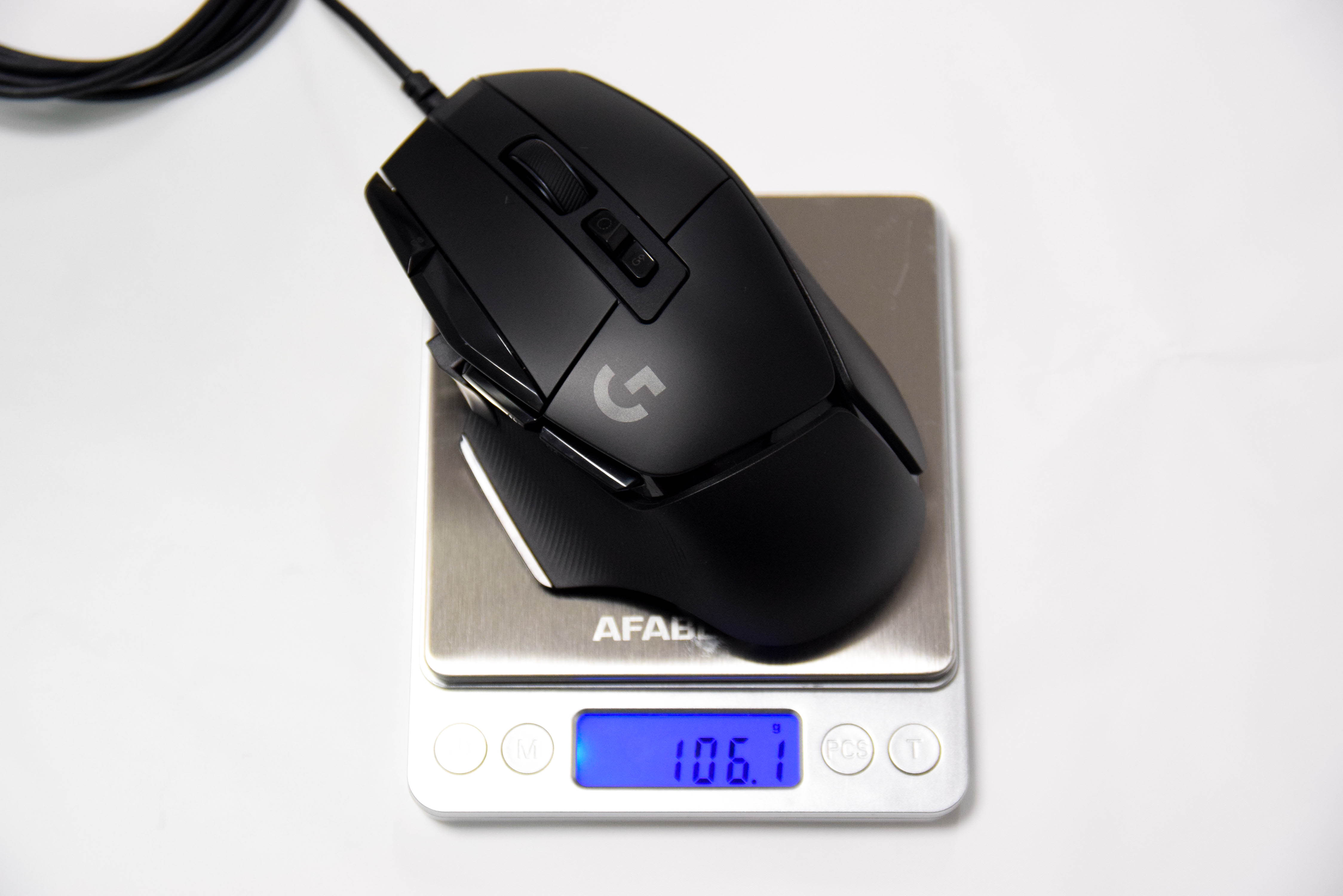 G502 X LIGHTSPEED 무게는 무선일 때 100g, 유선인 경우 106.1g으로 측정되었다.